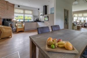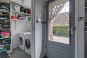 De keukeninrichting is in 2017 geplaatst en voorzien van inbouwapparatuur (vaatwasser, gasstel, koelkast, combimagnetron, schouwkap).