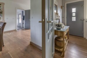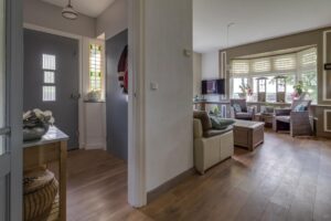 De woning is gelegen aan een rustige straat en heeft aan de voorzijde een weids uitzicht over de landerijen.