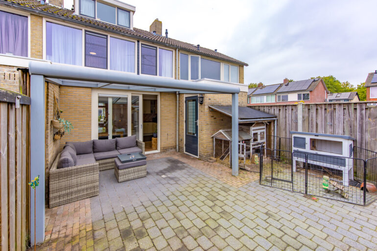 Aan de rand van de woonwijk gelegen keurig onderhouden, gemoderniseerde en UITGEBOUWDE tussenwoning met aangebouwde bijkeuken en overkapping op 166 m2 grond. Gelegen in een rustige buurt met op korte afstand meerdere voorzieningen zoals supermarkt, snackbar, scholen, sport- en recreatie.