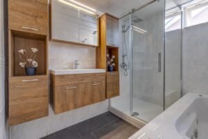 De douchehoek en het wastafelmeubel in de badkamer zijn in resp. 2022 en 2021 vernieuwd.