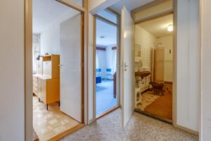 Onder de vloerbedekking in de hal ligt een natuurstenen vloer.