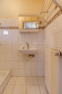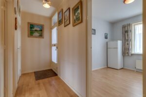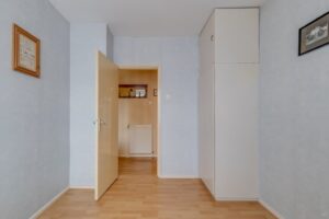 Indeling: Hal, meterkast, toilet (wandcloset), woonkamer met parketvloer, slaapkamer met vaste kast, eetkeuken met tuindeur, geheel betegelde douche met wastafel, wasruimte, slaapkamer met vaste kast en laminaatvloer.