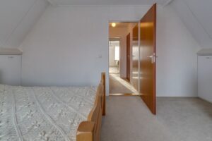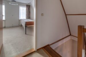 1e Verdieping: Overloop, 2 vaste kasten, 2 slaapkamers, werkkamer/berging met ligbad (mogelijkheid voor badkamer).